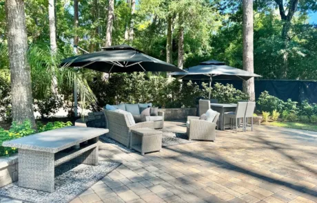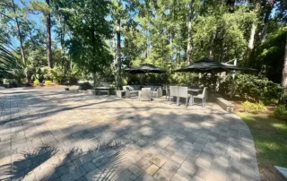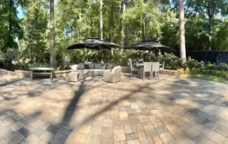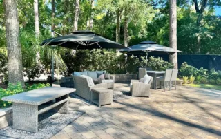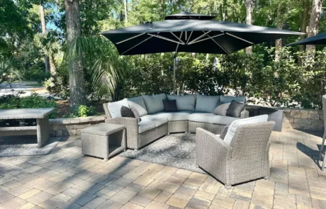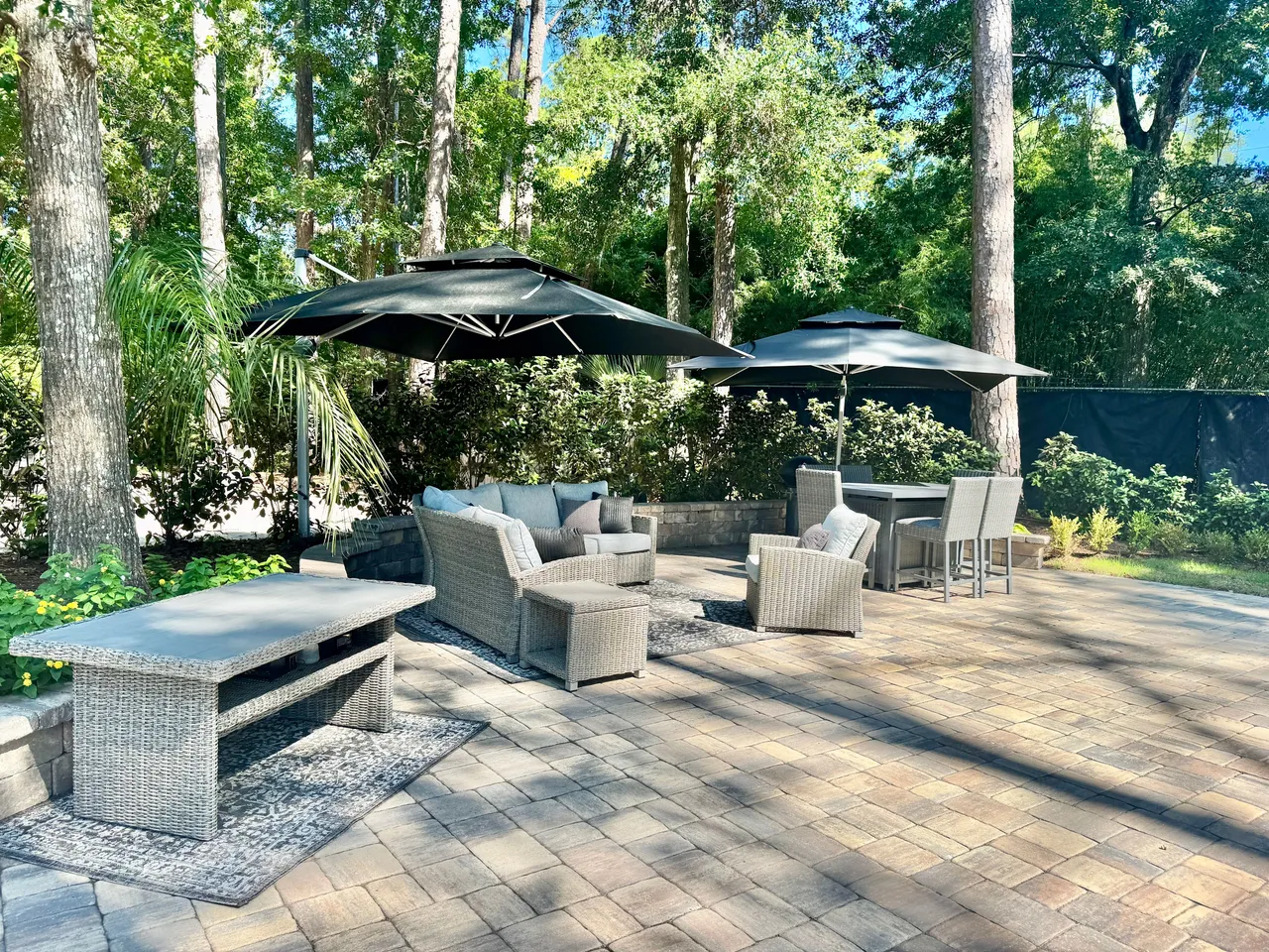 321 is now on the market! This 3000+ sq ft RV lot was renovated in 2021 with beautiful new pavers, illuminated paver walls, landscape lighting, and irrigation. The lot can now easily accommodate a 45′ coach and two vehicles and can provide ample room to spread out and relax! Lake view means excellent rental potential! New L-shaped sofa with cushions and matching sitting chair, high-top fire table with seating for 6, and 2 large cantilever umbrellas will convey.