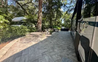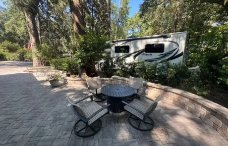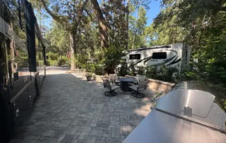 Lot #30 has a newer paver pad with sitting wall, large shed, landscape lighting, irrigation, and a new pedestal all on a highly coveted perimeter RV Lot in phase I. This outstanding lot can accommodate a 45′ coach in addition to 2 vehicles. New grill island and new outdoor furniture with fire pit will convey with the property.