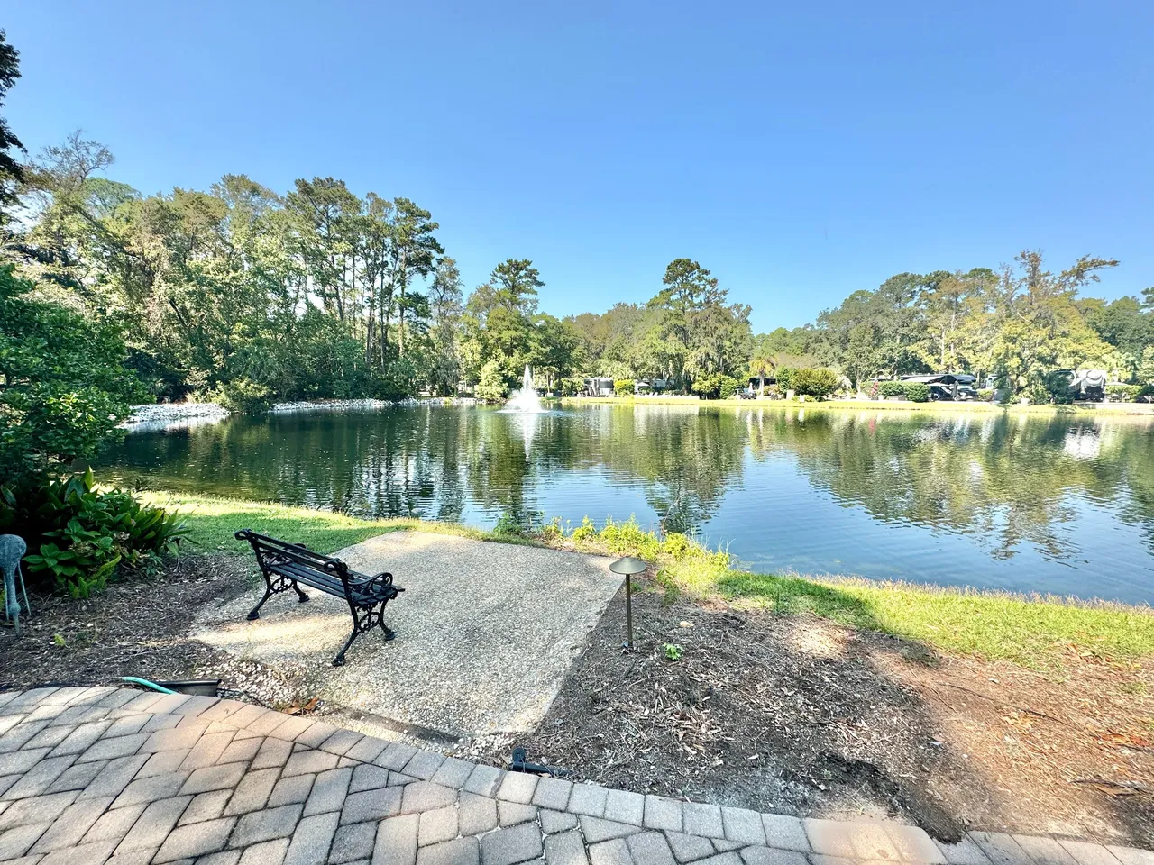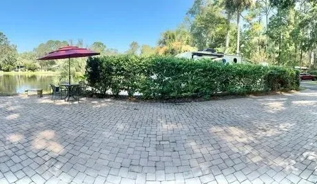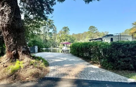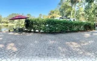 BEAUTIFUL RV LAKE FRONT LOT #331 is a pull-in paver lot that can accommodate 40′ coach and a tow vehicle. All furniture will convey with purchase. Excellent rental history available upon request.