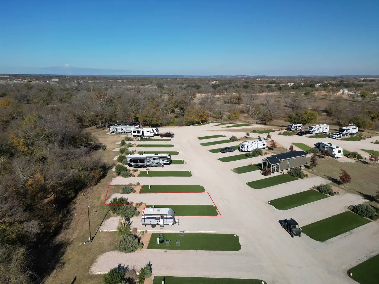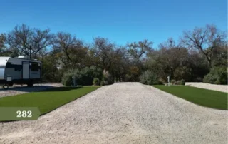 Enjoy added privacy and a serene Hill Country backdrop at Site 282, a desirable back-in RV site that backs up to a wooded green space, offering a peaceful setting rarely found this close to town. This well-positioned site comfortably accommodates a 45′ RV plus a vehicle, making it ideal for both personal use and rental income potential. Located within the Arch Ray RV Resort, owners are just a short walk or golf cart ride from the on-property Arch Ray Restaurant, Winery, Brewery, and Distillery, as well as live music and community events at the amphitheater. Historic Main Street Fredericksburg is only minutes away, placing shopping, dining, and wine tasting right at your fingertips. Ownership offers flexibility and ease-bring your RV, leave it on-site, and take advantage of the resort’s on-site rental management program, where owners keep 70% of the rental income. This makes Site 282 an excellent option for weekend getaways, seasonal stays, or income-producing ownership. Community Highlights: • Deeded RV site within a condominium regime • Backs to wooded green space for added privacy • POA fees include water, sewer, and high-speed internet • Owners pay electric, property taxes, and minimal liability insurance • Gated resort with paved roads, amenities, and planned future enhancements Whether you’re looking for a quiet retreat surrounded by nature or a smart investment in one of Fredericksburg’s most unique RV communities, Site 282 delivers privacy, convenience, and Hill Country lifestyle in one exceptional offering.